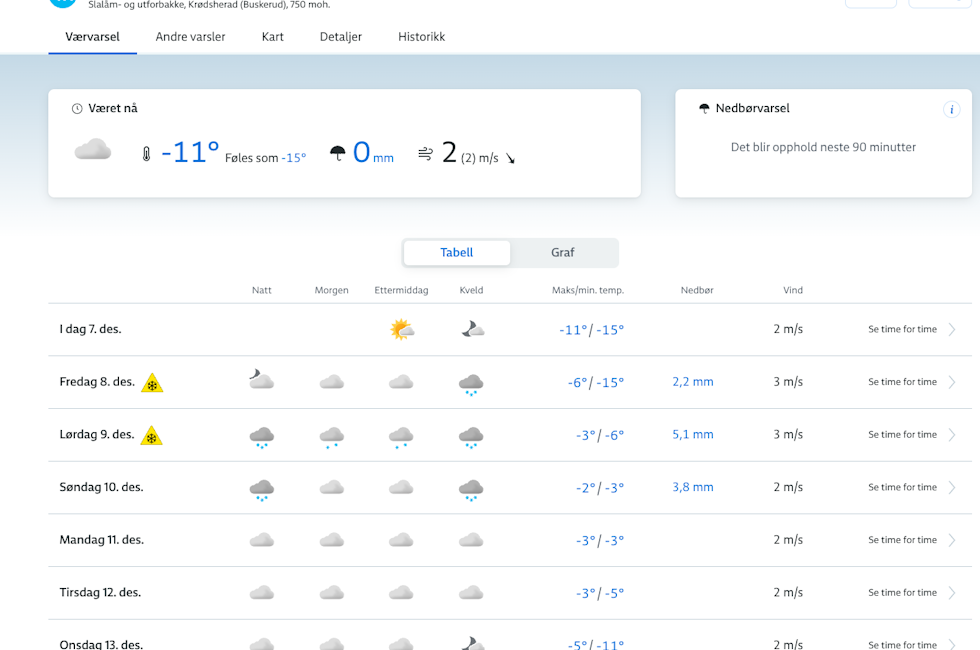 – Det er noen modeller som hinter om mild luft neste helg, så vi får se hva det blir. Men det blir hvitt frem til torsdag. Langs kysten kommer det nok plussgrader, sier Wiberg.