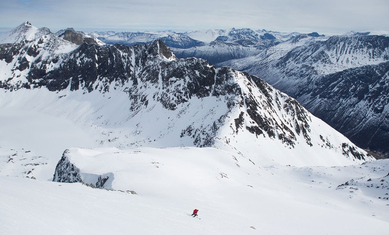 FIN KJØRING: Den mest kjørte ruta ned fra Litlskjorta byr på strålende skiterreng. Frusalbotnen nede til venstre, Kannsdalen til høyre. Foto: Tore Meirik