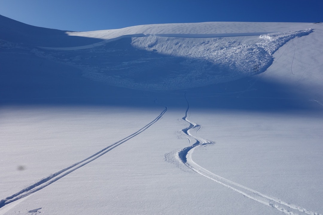– Jeg fjernutløste det da jeg kjørte på ski ned fra fjellet i 20 graders terreng, det vil si i terreng som er for slakt for å utløse skred. Bruddkanten var fire meter høy. Jeg har aldri opplevd maken til skumle forhold, sier Brattlien.