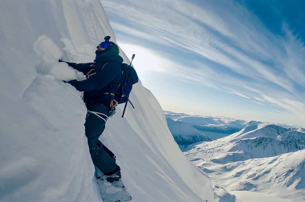 – Å kjøre ned sørsiden på Jiehkkevárri (1834 moh) er nok det mest ekstreme jeg har gjort i mitt liv som snowboardkjører, sa Krister Kopala til Fri Flyt etter bragden.