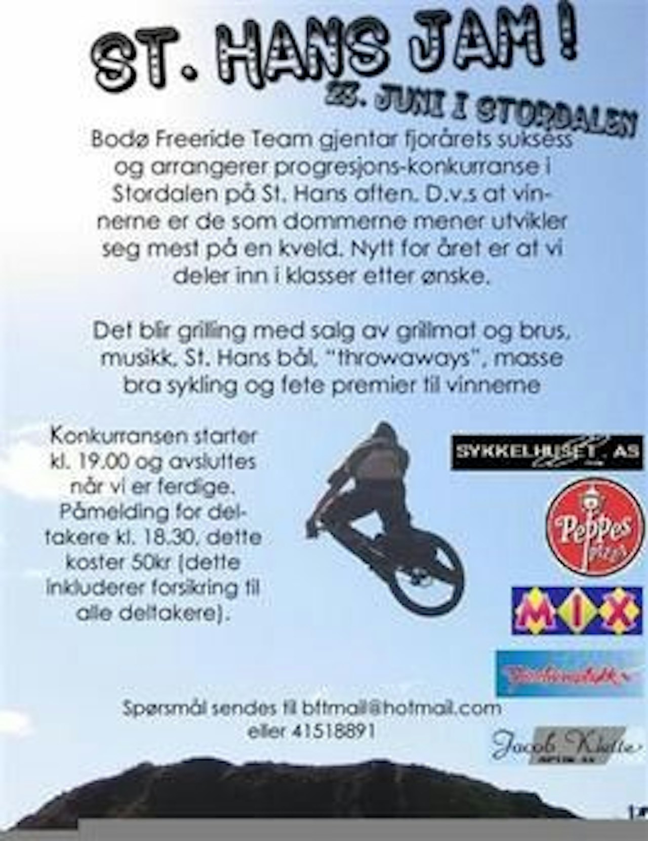 I kveld inviterer Bodø Freeride Team til St.Hans-konkurranse og sykkelfest. Vinneren av konkurransen er den som utvikler seg mest som syklist i løpet av kvelden.