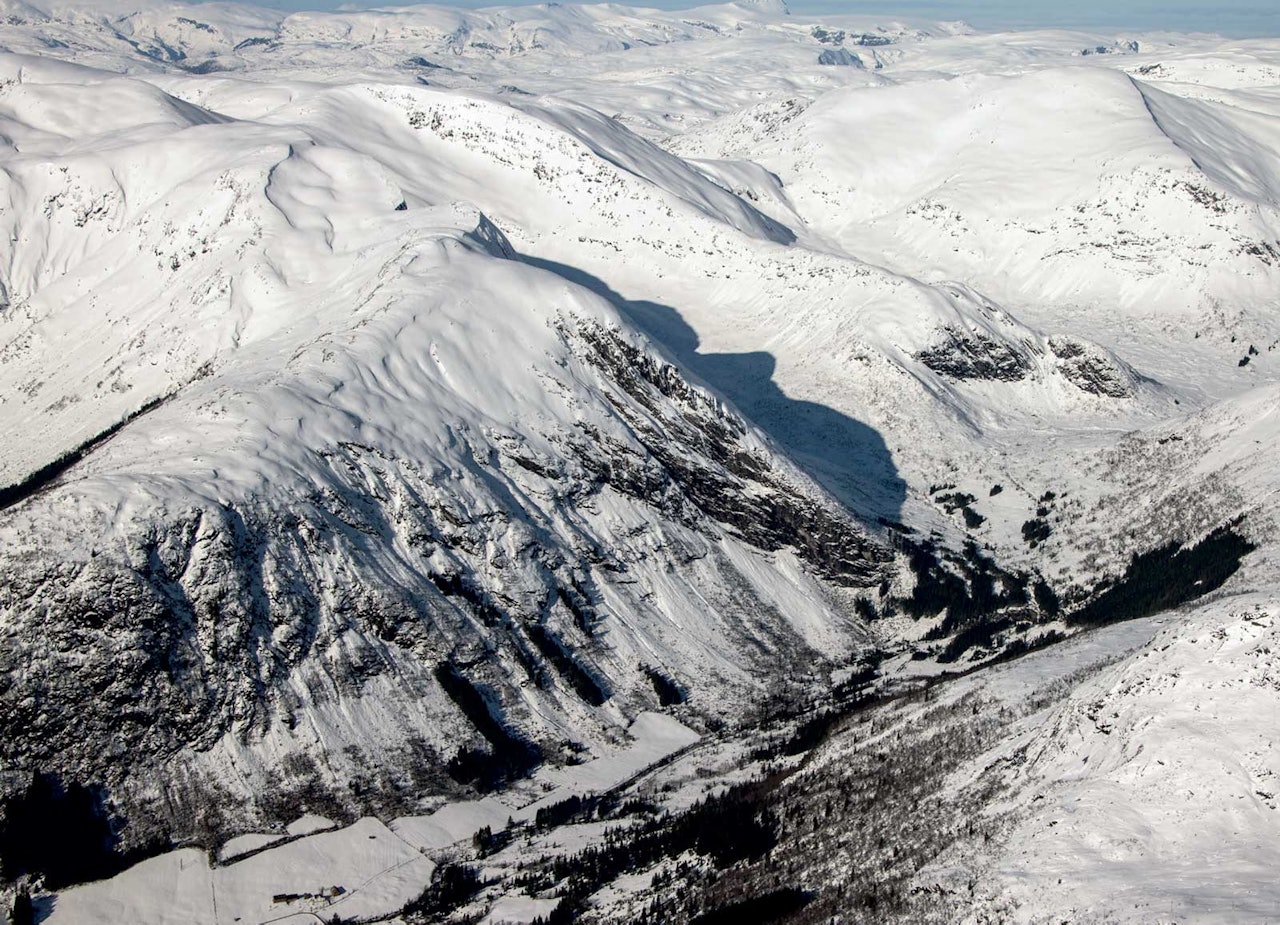 Farar: Langs ryggen frå Trollet og heile vegen til skaret før Syskarnipa legg det seg store skavlar mot Ålhusdalen.